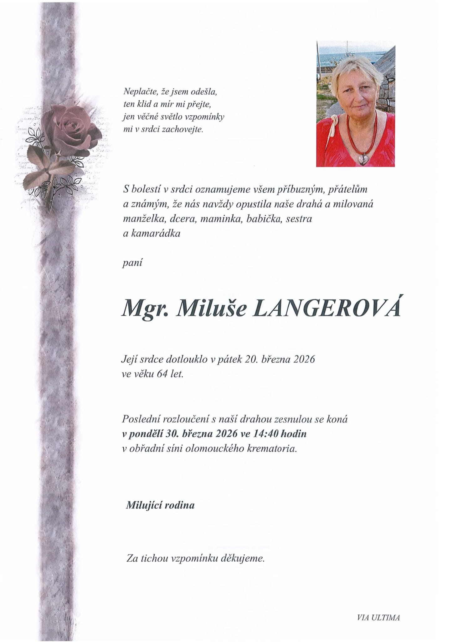 Mgr. Miluše Langerová † 20. března 2026