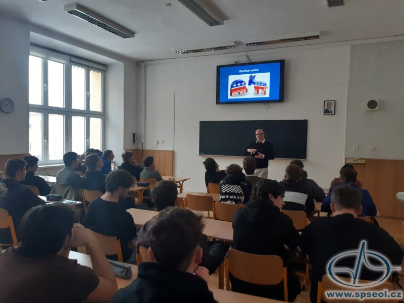 Ve dnech 16. - 17. 2. navštívili naši školu zástupci Amerického centra, kteří připravili přednášky pro studenty 3. a 4. ročníků. Studenti se seznámili s volebním systémem v USA a s významnou osobností Grace Hopper, průkopnicí v oblasti počítačových věd. Součástí přednášek byly také informace o možnostech studia v USA.